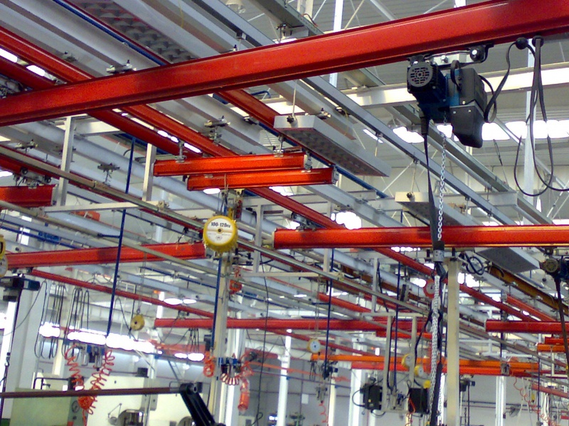KBK輕型起重機系統(tǒng)的主體是三種規(guī)格的冷軋型材,強度大、剛度好、自重輕,確保了系統(tǒng)的穩(wěn)定性。從定點運送到高有效度的多點、多節(jié)拍的自動化輸送,都能隨意組合而成。還有適應于不同廠房頂部結構的懸掛組件,可節(jié)省工廠的空間和面積,降低能耗,提高企業(yè)效益,適應性極強。
