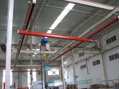 經(jīng)過LD型的改進,形成了一種叫LX型(JB/T1306)的電動單梁懸掛起重機(如圖所示)。